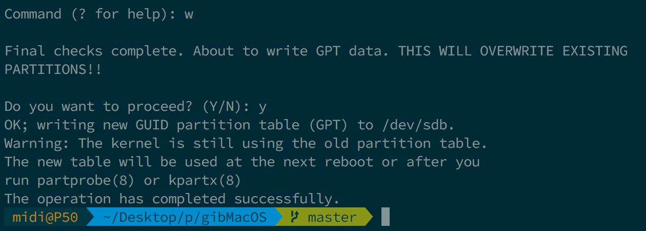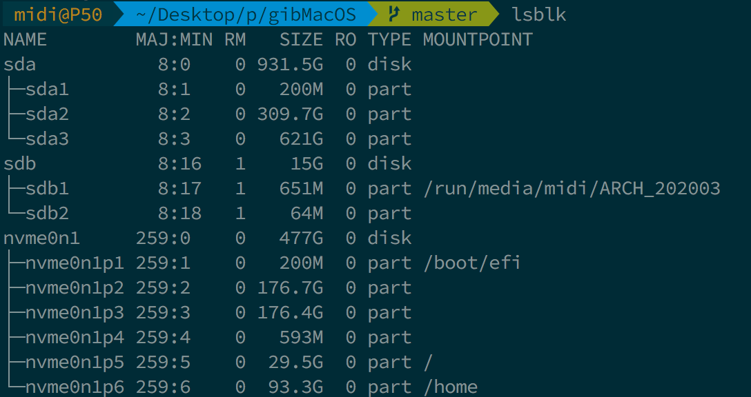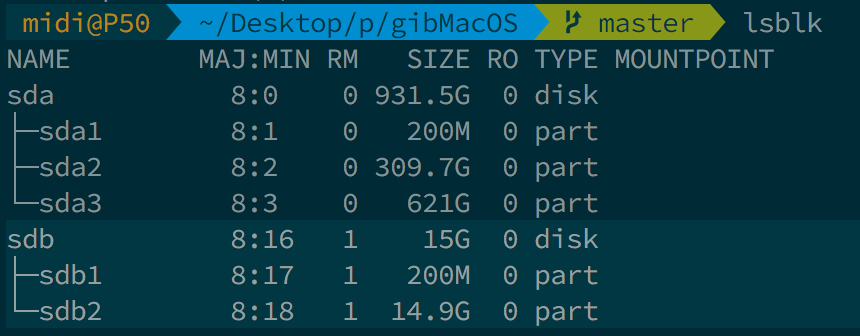 This section will target making the necessary partitions in the USB device. You can use your favorite program be it gdisk fdisk parted gparted or gnome-disks. This guide will focus on gdisk as it's nice and can change the partition type later on, as we need it so that macOS Recovery HD can boot. (the distro used here is Ubuntu 18.04, other versions or distros may work)