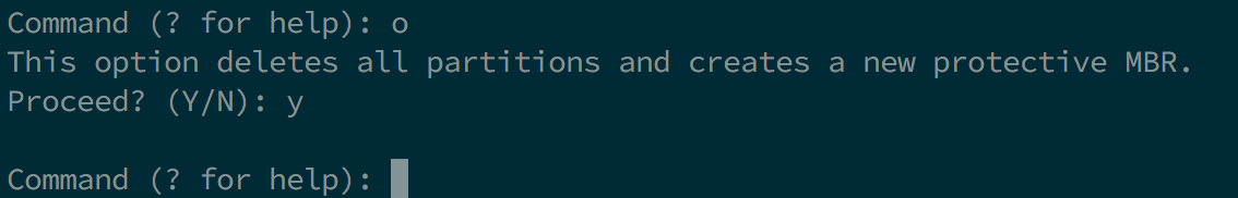 oto clear the partition table and make a new GPT one (if not empty)- confirm with