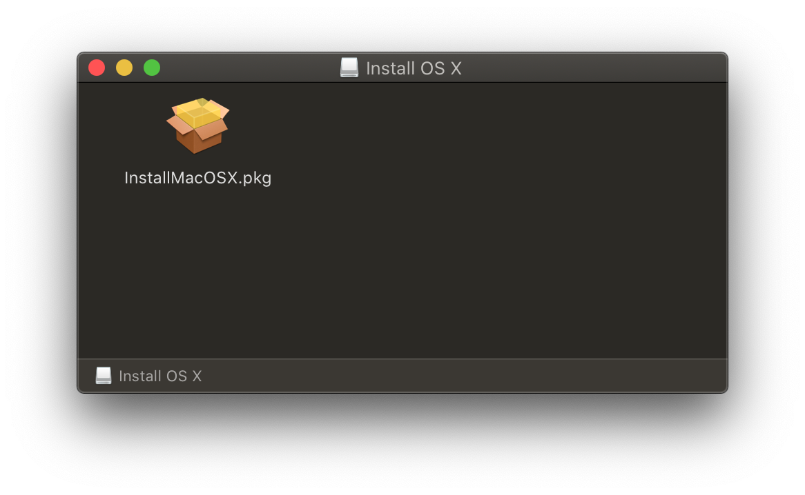 To start, grab the InstallMacOSX/InstallOS.dmg and mount it: